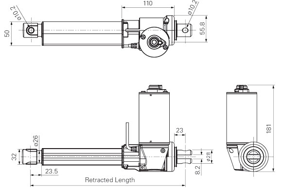 Care-motion Voltage of motor : 12V DC , 24V DC or 36 V DC Maximum load : 7,000N Maximum speed : 10mm/s Minimum installation dimension : Stroke +185mm Color : black or grey Suitable for dental chair application