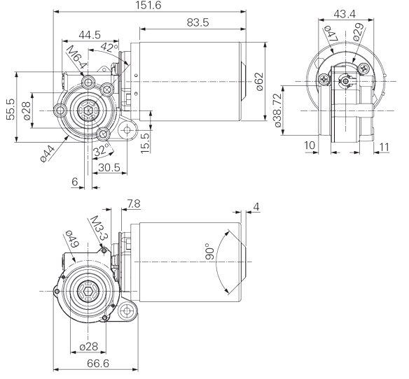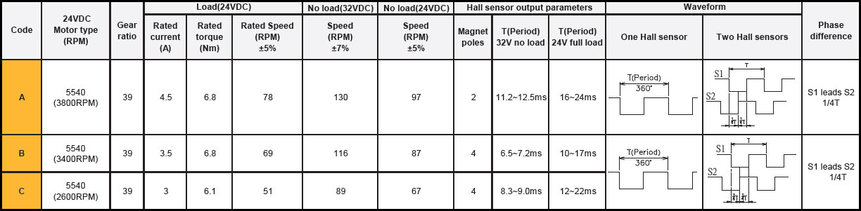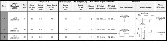 Ergo-motion Voltage of motor : 24V DC or 24V DC (UL) Maximum speed : 130RPM (±7%) after gear reduction Torque : 6.8 N.m after gear reduction Hexogen hole for the shaft by 6mm diameter Low noise UL compliant (motor only) Options : Hall sensor