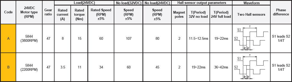 Ergo-motion Voltage of motor : 24V DC or 24V DC (UL) Maximum speed : 107RPM (±5%) after gear reduction Torque : 15 N.m after gear reduction Hexogen hole for the shaft by 9mm diameter Low noise UL compliant (motor only) Options : Hall sensor